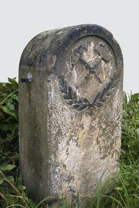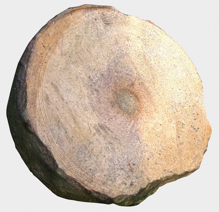 Spodek dvojice mlecích kamenů z chemické továrny v Lukavici, vyhotovený před rokem 1750 v lomech na mlýnské kameny v Raškovicích