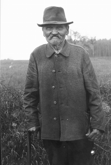 Horník J. Burkoň fotografovaný v květnu 1950 jako jeden z posleních pamětníků dolování pyritu v Lukavici
