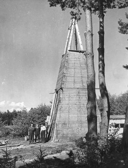 Výstavba šachty v místě původní Bartolomějské jámy na lukavickém pyritovém ložisku. Srpen 1952
