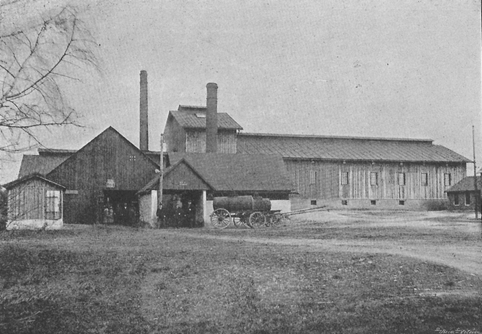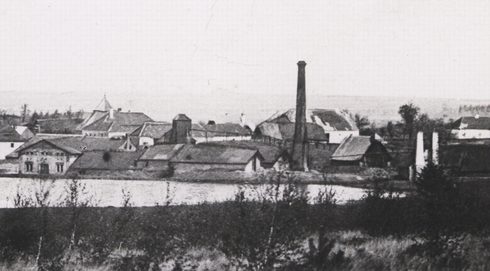 Kresba J. Venuta z roku 1796 (detail), nejstarší vyobrazení chemické továrny v Lukavici